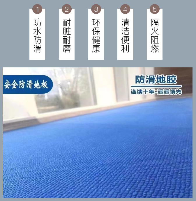 ?規(guī)格尺寸:安全防滑地板系列有兩種不同規(guī)格和厚度:2.2mm*1.8m*15m、2.9mm*1.8m*15m,按客戶要求面積定制;